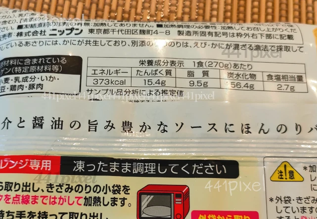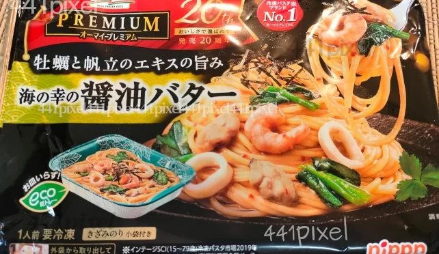 食べ物 373㌔㌍オーマイの海の幸の醤油バターパスタを食す。90点 2023年8月16日 編集者 今日のお昼は、冷凍パスタを。オーマイプレミアムの「海の幸の醤油バター」を食べてみました。 エビ、イカ、ほうれん草が入った和風パスタです。 中身は、具材たっぷりの醤油味のパスタ。これは美味です。 カロリーは、1パック270gで373kcalとこのタイプの冷凍パスタで標準的なカロリー。 味も気に入ったので90点。